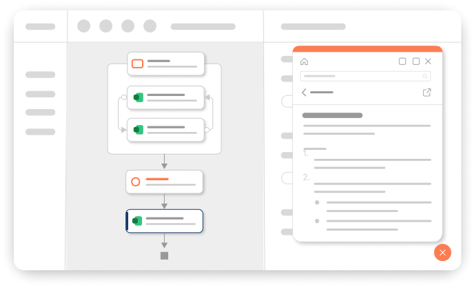 Generieren Sie neue Prozessautomatisierungen mit Eingabeaufforderungen in natürlicher Sprache. Verbessern Sie jede Automatisierung mit Vorschlägen für die nächste Aktion.