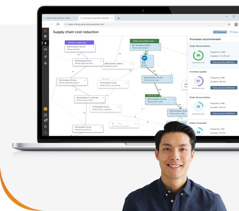 Combine automações baseadas em API de alta resiliência com a escalabilidade, segurança e confiabilidade da infraestrutura de nuvem gerenciada da Automation Anywhere para executar fluxos de trabalho de processos de negócios de ponta a ponta.